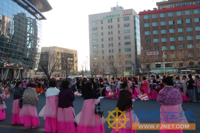 韩国信徒身着韩服在釜山火车站隆重迎接佛指舍利