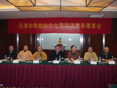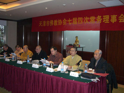 会议首先由天津佛协智如常务副会长作2005年天津市佛教协会总结报告,天津佛协妙贤副会长作2005年天津市佛教慈善功德基金会总结报告和2006年展望报告。随后,圣辉法师作了重要讲话,对天津佛教过去一年中所作的工作予以了肯定及展望。天津市宗教局马竸副局长到会祝贺,并发表了热情洋溢的讲话。