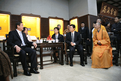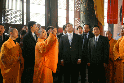 12月1日上午9时许,蒙古国总统恩赫巴亚尔及其夫人一行在浙江省钟山副省长的陪同下,参观访问杭州灵隐寺。灵隐寺古朴幽雅的环境、巍峨壮观的殿堂建筑,丰富珍贵的文物收藏,给恩赫巴亚尔总统留下了深刻的印象。