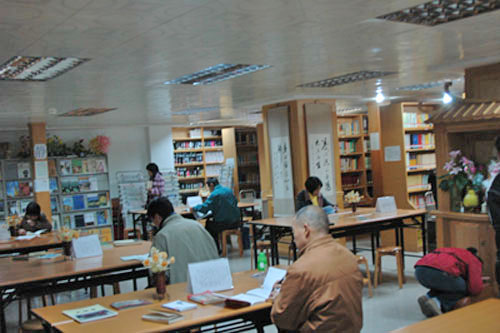 针对信众不同层次的要求,图书馆分设“青年佛法修学班”、“青年佛学提高班”、“青年静坐班”;设立“儿童经典诵读班”,注重学习中国传统文化经典如《三字经》、《唐诗选读》、《大学》、《中庸》、《弟子规》等;为老年居士设立“老人佛学共修班”;为一些社会青年与知识分子开设“英文佛学班”。结合现代人修学习惯,以音声事佛,成立了“海螺梵乐艺术团”。依托图书馆还成立了“佛教福利慈善部”,节假日为读者开办义诊,募集钱物助困扶危等。此外,通过各种渠道,礼请国内外各界专家学者、大德法师来馆内作佛学讲座。目前,图书馆还办起自己的网站,读者可在网上查询馆内有关藏书及最新活动资料。通过这一系列活动,丰富了信众的精神生活,有助于树立正知正见。
