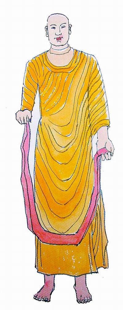 据了解,僧侣的法衣称为“袈裟”,意思是“不正色”,即法衣杂色制作,只能用铜青色、泥皂色、赤黑色3种颜色制作僧衣。目前国内有多家僧衣制作单位,僧衣形式较为统一。而浚县文物旅游局绘制的僧衣图例多达63种,且形式复杂,各厂家都没敢接。