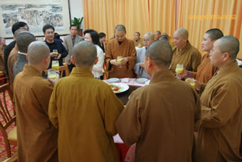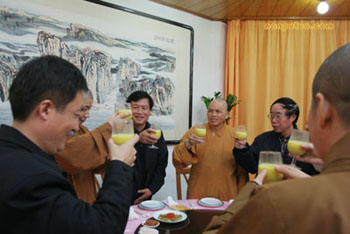 晚宴中,陈建德局长谈到了十五规划、六中全会等国家政治情况。他赞扬了闽院教育与管理的功绩,他说,目前国家政策中的宗教管理、宗教院校规划与教师评定对促进佛学院开展各项工作将有所推动,我们闽院应珍惜机遇,在新的一年里再接再励。