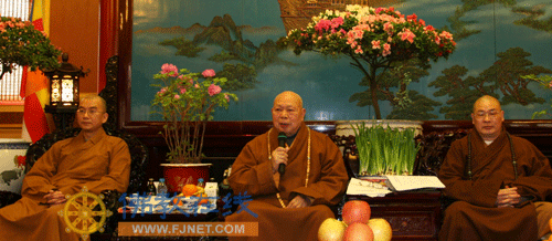 一诚会长代表中国佛教协会致新年贺词后,丰富多彩的文艺节目和抽奖活动在热烈的气氛中展开。茶话会上掌声阵阵,笑语连连。在欢快的气氛中,新春茶话会圆满结束。