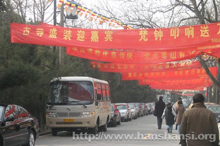 寒山寺外停满了来品尝腊八粥市民的车辆