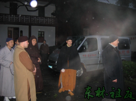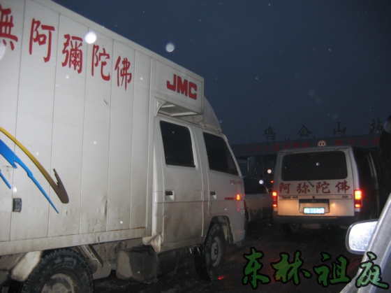 快到武胜关时,天就开始下雪,路边的大型车辆排成了十几里的长龙。东林车队中的两个车没有暖气,还有两位老人随车回家。如果今晚不能过去,势必在冰天雪地里过一夜。真那样的话,恐怕明天得派一辆车拉着病号回东林寺。幸好我们的车型都小,就不随大型车在路旁等,直接往前穿插。饶是如此,路上还是堵了几次。天色越来越晚,温度也越来越低,武胜关的隘口还没有看到。为了指挥车队,几个同事跑来跑去,鞋子都湿透了。脚象踩在冰水里。短短的几十里山路,真的感觉好漫长。