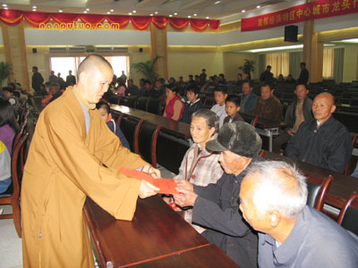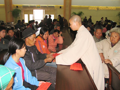 12月25日上午,遵照南普陀寺慈善会会长圣辉法师的指示,常务副秘书长普陀法师和慈善处德鸣法师、天真法师、觉明法师等,在厦门市翔安区区政府4号楼3楼会议室里举行了“迎新春送温暖献爱心慰问孤老孤儿”的活动,为100名孤寡老人和100名孤儿发放慰问善款10万元。祝愿孤老孤儿新年愉快、幸福美满、平安祥和!