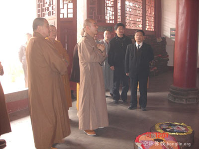 宗性法师、大恩法师、意寂法师和演法法师与有关领导一道视察寿佛寺