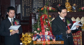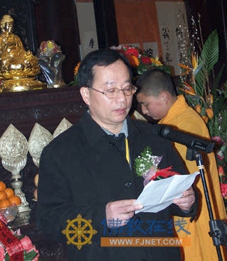 上海玉佛寺方丈、中国佛教协会副会长觉醒法师代表诸山长老讲话