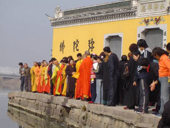 佛教在线1月31日消息 据宁波宝庆讲寺报道,农历丙戌年正月初一,宁波宝庆讲寺举行法华三昧实修法会和大型放生法会。放生法会由宝庆寺监院清修法师主持。大智度论云:诸余罪中,杀业最重,诸功德中,放生第一。通过放生长养信众的慈悲心肠,体会众生皆平等,众生皆有佛性,众生皆可成佛。