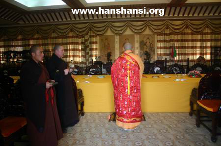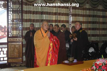 佛教在线1月29日消息 据寒山寺网站报道:除夕清晨寒山寺住持秋爽法师率领僧众为诸佛、菩萨上大供,祈愿世界和平,全国人民六时吉祥,期望世人能徜徉真理领域,以佛教真理净化身心。