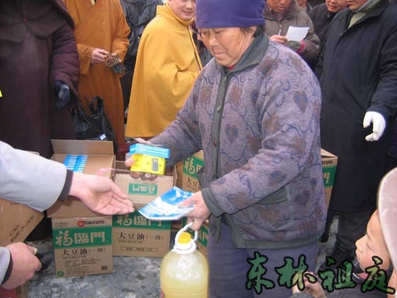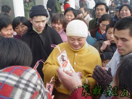午饭后,我们先去买了些大豆油等慰问品,就在义工的带领下赶往芦岗乡南大吴村。进了村子,好些好奇的村民来围观。他们也许第一次见到出家人吧。