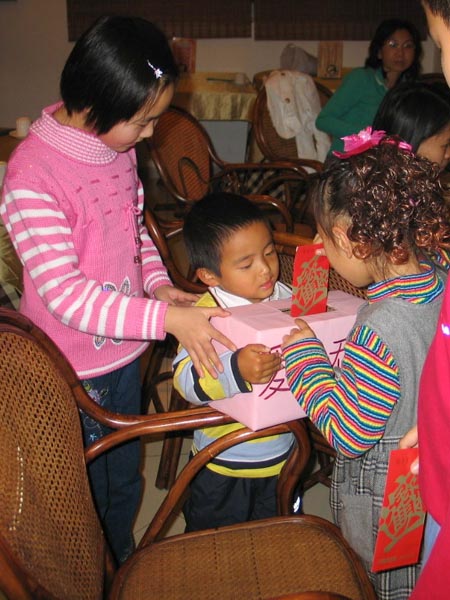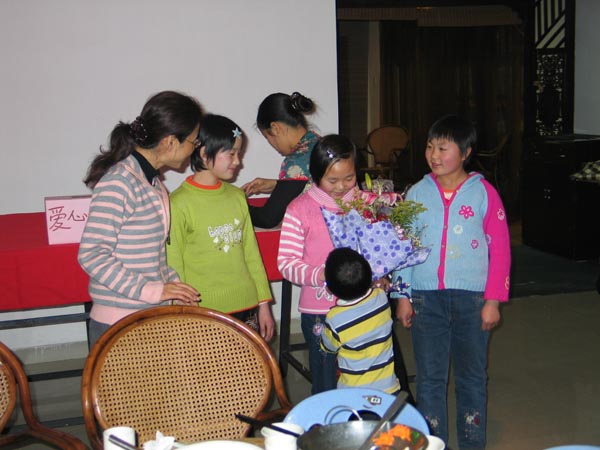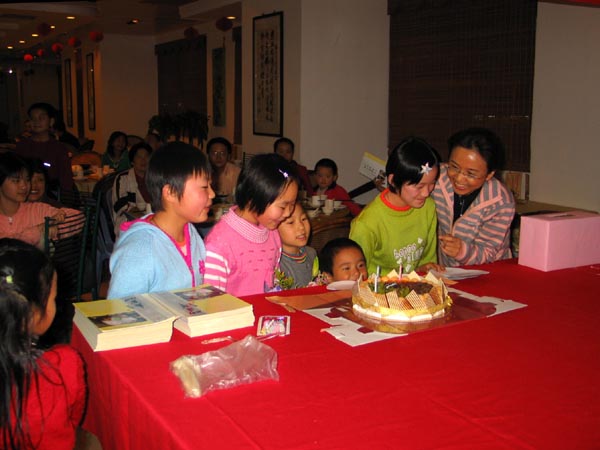 活动当晚,深圳的爱心人士为即将过生日的弘德家园孩子杨倩提前过了生日,并准备了精美的生日蛋糕。顿清师兄的儿子嘟嘟为杨倩姐姐送了一束鲜花,到场的大人小孩一起拍手欢唱生日歌,祝福杨倩生日快乐,并一起分享了生日蛋糕。