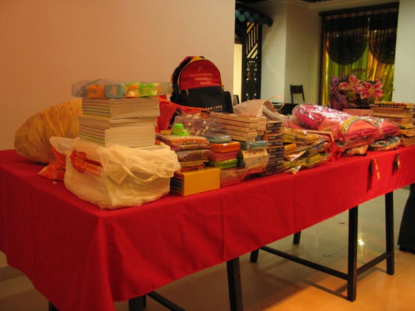 大家纷纷为弘德家园捐助了文具、学习用品和衣物等。