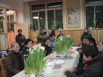 真际禅林热情接待十方来客,成为春节长假信众温暖的家园。客堂中央长条桌上摆满了水仙花、花生、瓜子、糖果、水果,居士们团团围坐交流修学体会,共度新春佳节。
