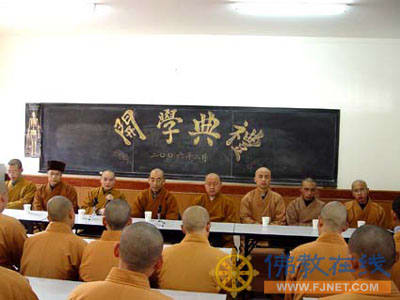 贤空法师还转告了院长学诚法师对大家的要求:“在学习上,要强化组织观念,淡化宗派观念;在修行上,要注意道心的培养,不要忽视上殿、过堂、出坡等活动。我们虽然在佛学院上学,每个人都是常住的一员,一定要注意与常住的积极配合,对常住应该常怀感恩之心,真正实现学院丛林化,丛林学院化的办学方针。”