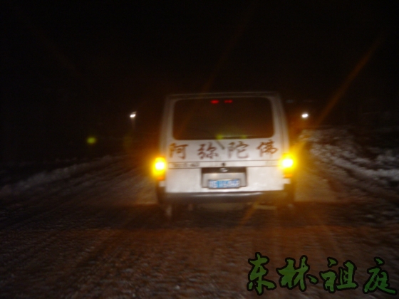 车队沿着坑坑洼洼的老路返回甘岸镇,又用了两个多小时。在镇头,觉海法师和患者代表握手道别,我们开始奔向驻马店。路仍然很滑。按计划原本打算赶到驻马店的上蔡县住宿,但时间到了晚上十点钟,离驻马店还很远。大家中午都没吃饭,都硬挺着。现在连司机师傅也都受不了了。路边有一家小饭店,虽然灯光昏暗、冷气飕飕,但也顾不了那么多了,将就凑合一顿饭。
