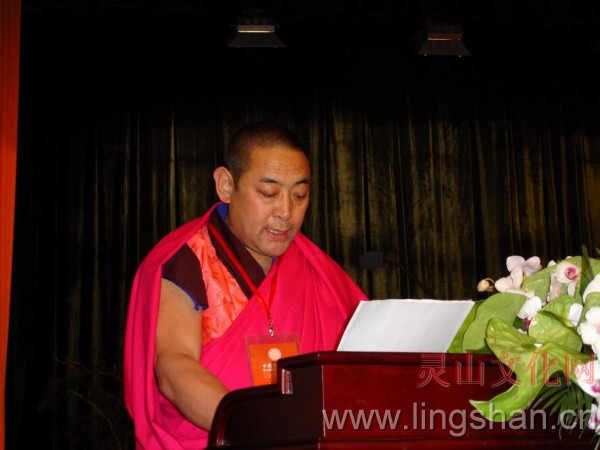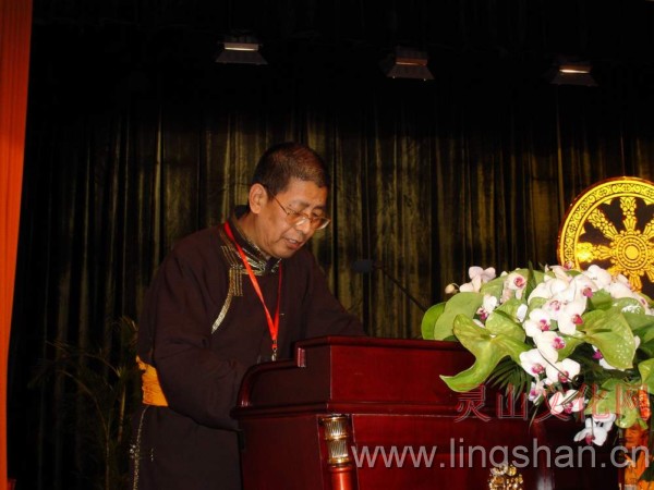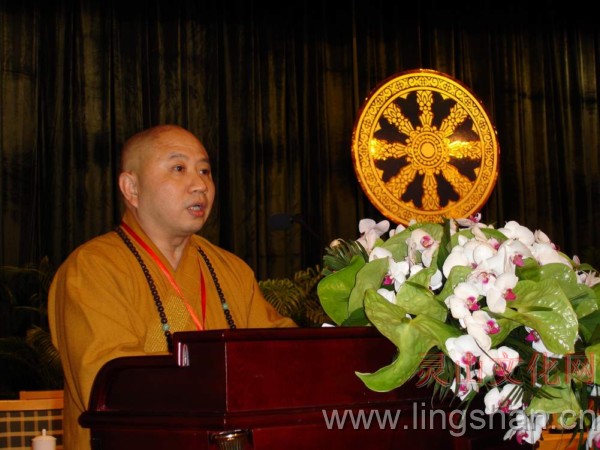 中国佛教协会副会长、广东佛教协会会长、广州光孝寺方丈明生法师发言:《以同四摄法:布施、同事、利行、爱语;共入不二法门》