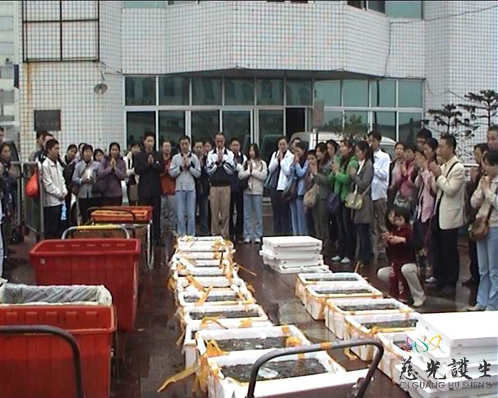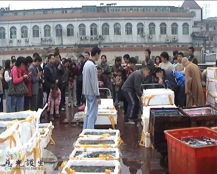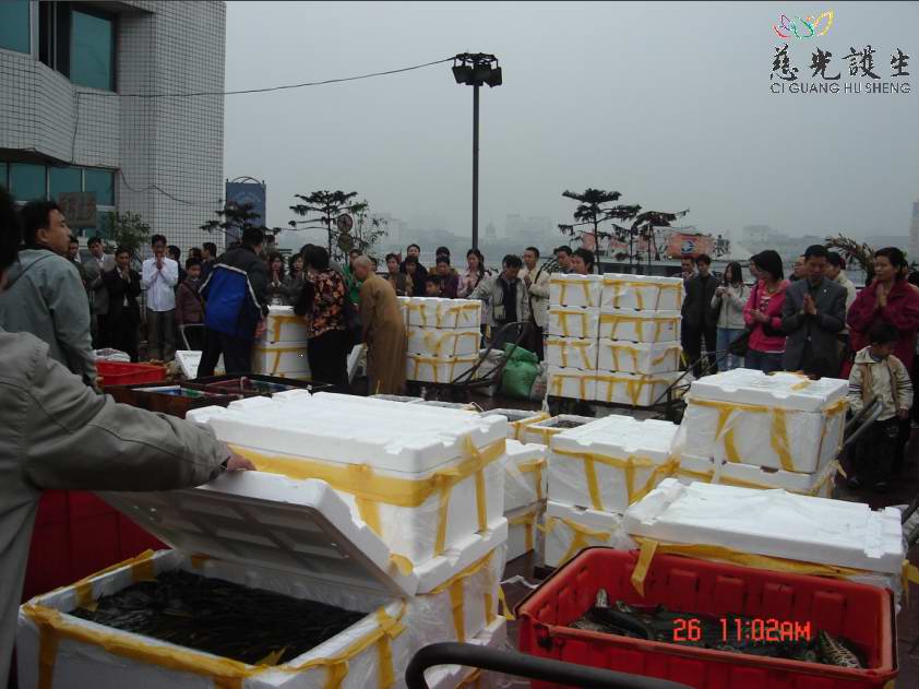 我们分头购买物命(慈光不预定,印光大师等大德非常反感预定),等我们买的差不多了,上一组的放生也快结束了。