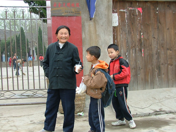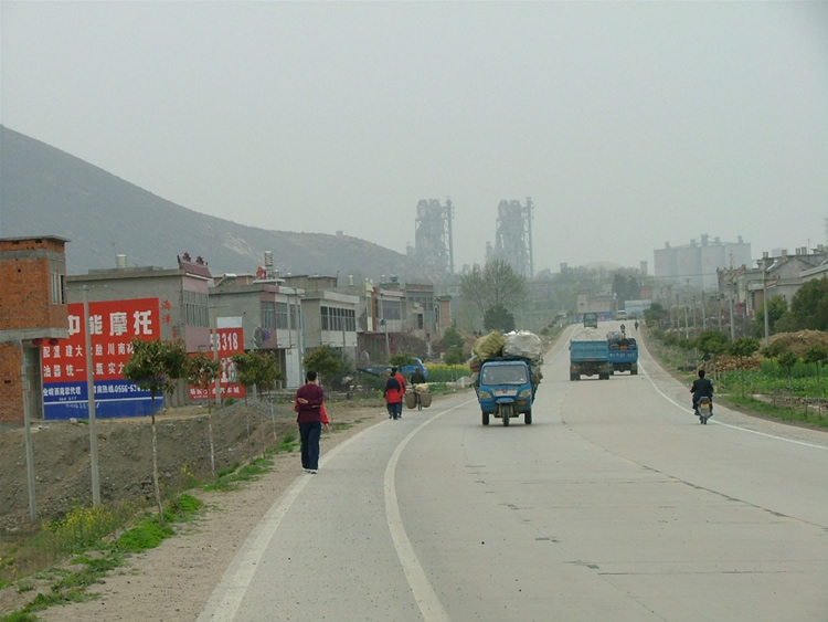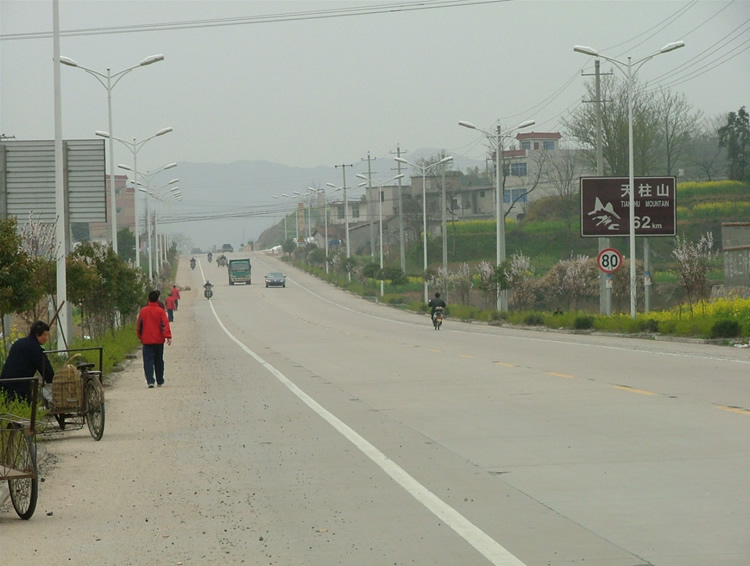 12:00,到达月山,已走了22公里了, 我们午餐的餐厅老板也是“学佛”人,她的家人16个全部学佛,唯有她自称“我不信,但我做好事不做坏事,帮助需要帮助的人。”饭罢,并与宋师兄结缘佛教宣传挂画。听说我们此次活动的含义后,主动免去午间休息的费用,亲自为我们铺好床单招呼我们休息。她的脸庞总是洋溢着朴素真诚的微笑,我们要开始行脚了,大方的与我们合影。
