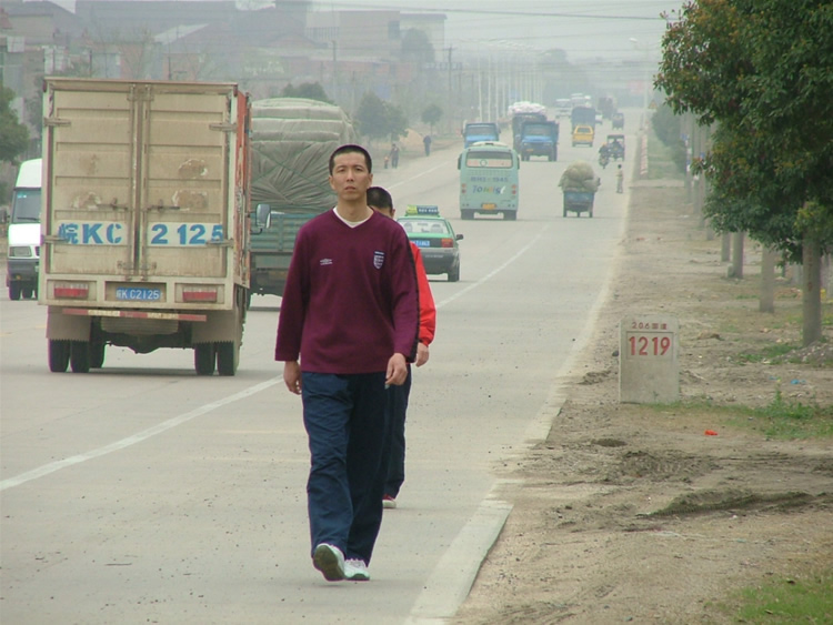 18:43,行脚团圆满完成今天的计划到达黄墩镇,行程39.5km。今天行脚团员们脚步比前几天要小些。宋师兄还仔细比教了每公里步伐数。 住宿是当地人自己家家开的那种夫妻店,住宿条件比较差,没有洗浴、公用卫生间。不过老板人很和蔼,听说我们又是慈善活动热情给我准备了泡脚热水,脸盆,床也铺的整整齐齐的。