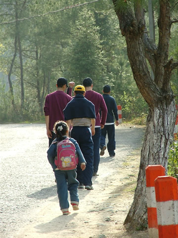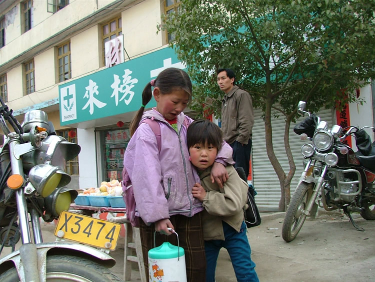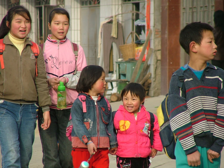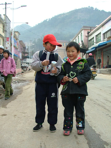 这里的小学生每天早上都自己走路上下学,通常是一个大书包加一个用塑料袋,里面装的是饭盒和个水瓶。水瓶通常都是可乐瓶,里面装满凉白开水,是真正透明的可乐。