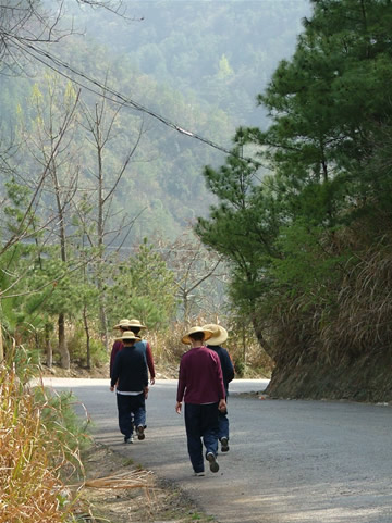 这2天走的都是山路,是大山的腹地,路上车辆也很少。偶尔有些摩托车驶过。空气非常好,非常宁静,走在路上只能听见风吹树草的声音和山间溪水流动的响声。