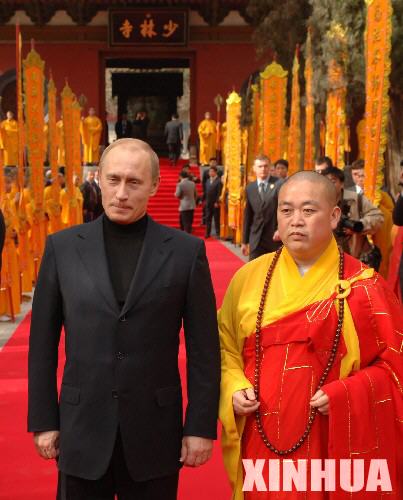 3月22日,正在中国访问的俄罗斯总统普京到河南省少林寺参观访问。