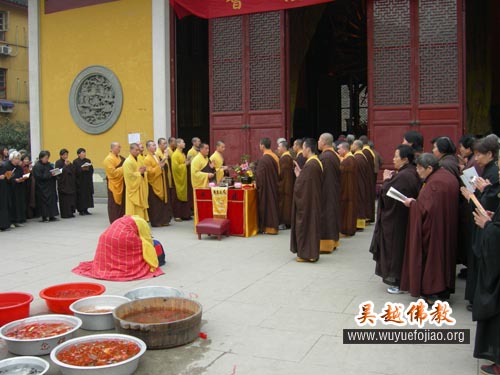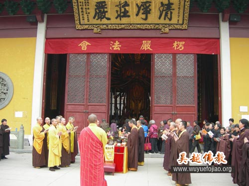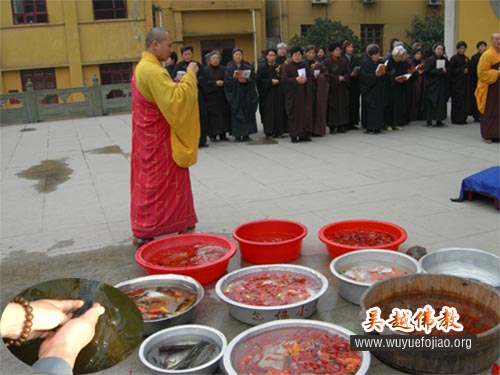 吴越佛教网报道:3月21日,法净禅寺楞严法会的第三天,二百多位四众弟子在圆通宝殿前举行了放生活动。
