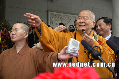 红网长沙3月18日讯:年近80的台湾佛教界领袖、著名高僧星云大师于3月17日抵达湖南,参加3月18日在湖南省博物馆举行的“觉有情——星云大师墨迹世界巡回展”开幕典礼。湖南省委副书记谢康生、湖南省副省长许云昭出席典礼。