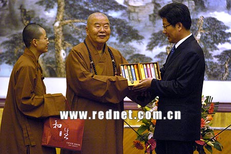 星云大师还希望台湾和大陆加强交流,张春贤对此表示赞同。张春贤表示,佛教文化是中华传统文化的重要组成部分,希望湘台两地佛教界加强交流,密切往来,增进感情。 (作者:刘怡斌 明健飞)