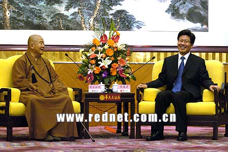 红网长沙3月18日讯:今天下午,中共湖南省委书记、省人大常委会主任张春贤在长沙会见了台湾佛教界领袖、著名高僧星云大师一行。国家宗教局局长叶小文、国务院台湾事务办公室副主任王富卿,文化部港澳台司司长助理孙晓红,湖南省领导谢康生、于来山、许云昭参加会见。