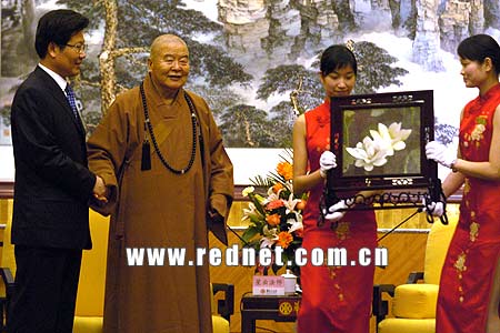 星云大师来湘的国际佛光会中华总会荣誉会长吴伯雄、财团法人新兴民族文教基金会董事长许信良、亲民党党务高级顾问钟荣吉,国际佛光会中华总会理事潘维刚等一同接受了会见。