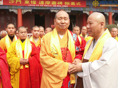 西安大兴善寺报道,佛历2550年2月8日(2006年3月7日)佛出家日之际,西安大兴善寺举行韩国东惺法师绘达摩画像碑揭幕式。