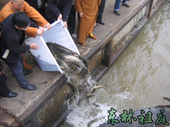 东林寺网站消息:3月18日,农历二月十九,是观世音菩萨的圣诞,庐山东林寺护生会在长江口岸举行了一次放生法会。