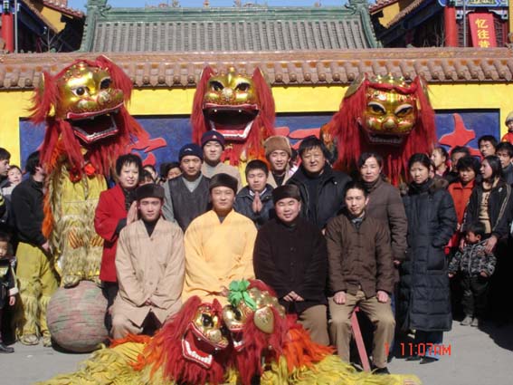 表演结束后,龙泉寺部分常住僧人、居士与舞狮成员合影