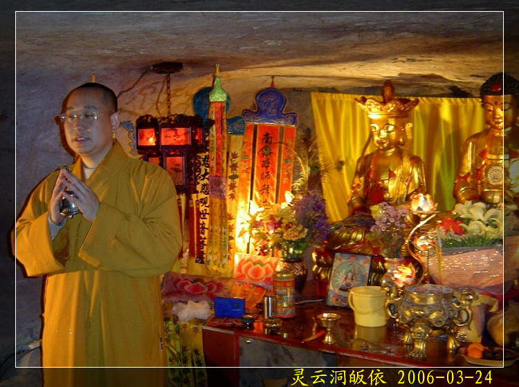 灵云洞外跟法师合影!师父明天就要离开桂林了,祝福理航法师法体安康!一切吉祥!