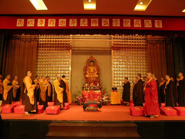 玉佛寺网站消息:农历二月初八(3月7日)晚,玉佛寺内一片喜庆祥和的气氛。众善信齐集觉群楼多功能厅,共同举行释迦牟尼佛出家纪念法会。