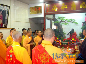 佛教在线4月27日讯 4月25日,漳州龙文区116岁妙智长老全身舍利安奉法会于该区香光佛堂举行。福建省佛协副会长兼秘书长本性法师、副会长道元法师,漳州市佛协代会长道裕法师为法会主法。本性法师、道元法师等应邀在法会上讲了话。参加法会的佛教界主要人士还有福建省佛协教务处副主任灵耀法师,漳州市佛协副会长广宗法师,秘书长法渊法师,副秘书长庄成钟、张尧堡、张国楷居士等。漳州市民宗局周肖峰局长、龙文区宗教局郑宝忠局长等应邀出席观礼。 妙智长老于三年前以116岁高龄示寂,三年后开缸,成就不坏之全身舍利。他一生专修药师法门,并悬壶济世。香光佛堂现负责人,亦是妙智长老徒弟的法光法师表示,佛堂正筹划建设长老纪念堂,供奉福建解放以来惟一的肉身舍利。 |