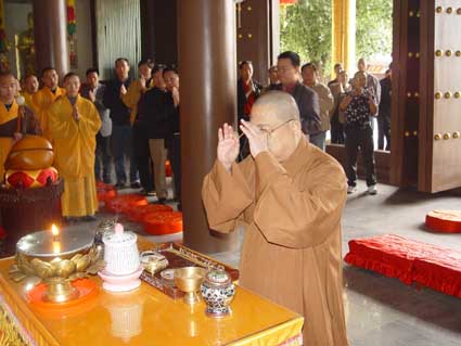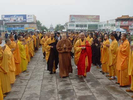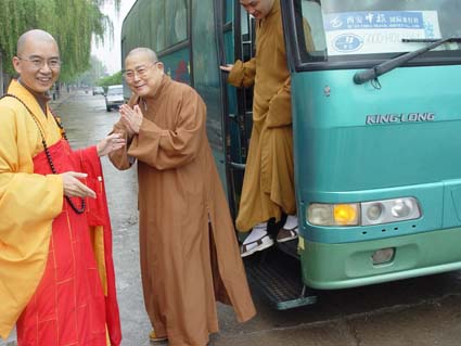 定海长老代表世界佛教僧伽会和印度尼西亚大乘佛教僧伽会来中国出席首届“世界佛教论坛”大会,应学诚大和尚的邀请,专程前来陕西参拜法门寺佛指舍利。法门寺以较高的礼仪迎接定海长老一行,法门寺主要执事和法门寺佛学院全体师生列队欢迎。