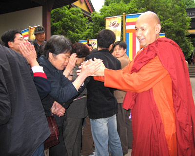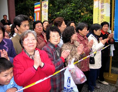 许多信众早早守候在古寺门外欢迎各国高僧并致问候