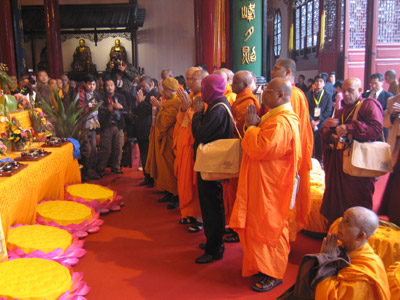 各国僧侣参拜正在净慈寺供奉的释迦牟尼佛螺髻发舍利
