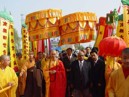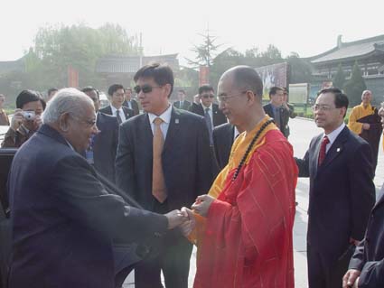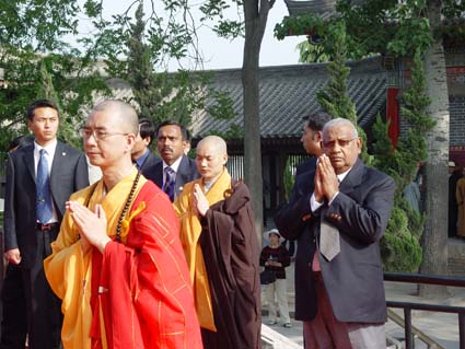 斯里兰卡多数人信仰佛教,总理是一位虔诚的佛教信徒,法门寺举行了隆重的欢迎仪式,学诚大和尚率领主要执事到山门口迎接,在瞻礼佛指舍利前举行了庄严诵经法会。
