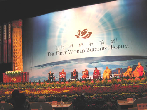 新华网报道:4月13日,首届“世界佛教论坛”在浙江杭州开幕,来自34个国家和地区的1000多位佛教高僧、专家学者和政要以“和谐世界,从心开始”为主题,共商构建和谐世界和佛教发展大计。论坛由中国佛教协会和中华宗教文化交流协会主办。