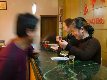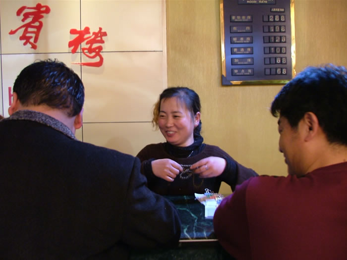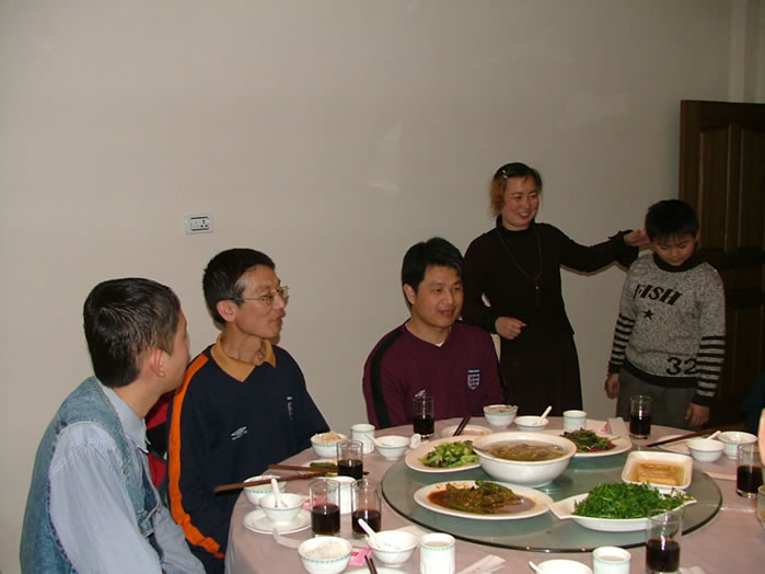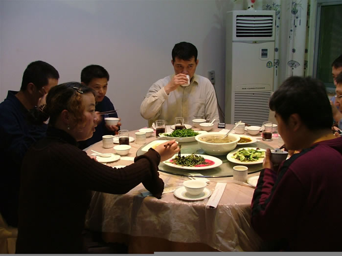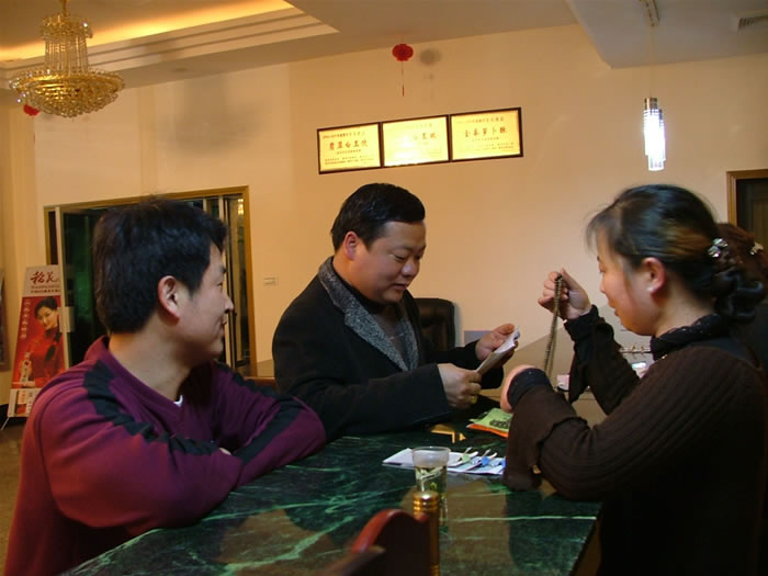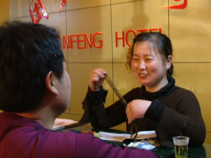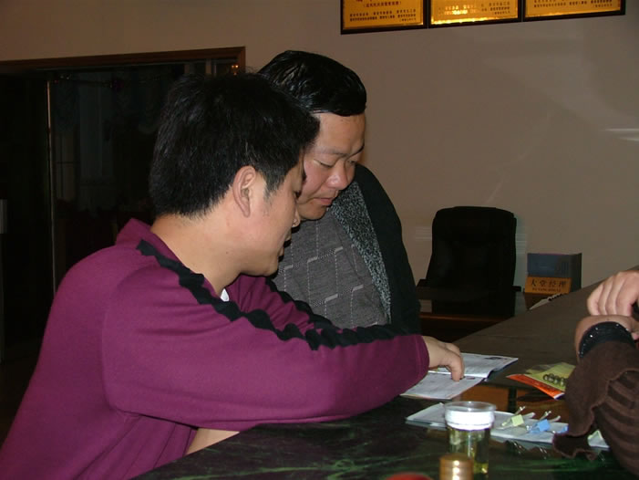今天晚上我们一行开车到团风县食宿。这个县宾馆比较少,我们找遍整个县城,最后定在一家机关宾馆住下。这家店好象与我们非常有缘。我们从英山县到这里的一路上,老板娘的司机看到过我们的车子三次,所以一见到小王就非常亲切热情,仔细了解我们活动的意义。正巧老板老板娘也在,大家一起聊了起来。原来老板娘姓吴,和她先生俩均已信佛学佛,我们就叫她为吴居士。吴居士非常关心我们,亲自到厨房安排素菜,并叫全家三口(夫妻俩和他们小学5年级的儿子)一起陪同用餐,聆听宋师兄讲解整个活动的过程和意义,以及素食推广的经营理念。在整个谈话过程中,店老板是默默无语,全神倾听,深受感动。用餐过后,当即决定为我们免费提供晚餐和住宿,并再捐款500元。