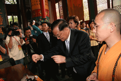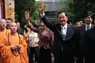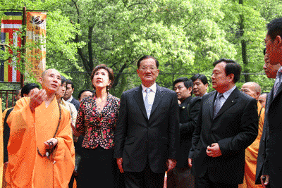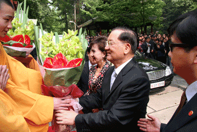 灵隐寺网站报道:4月22日下午,中国国民党名誉主席连战先生偕夫人一行,在浙江省委副书记夏宝龙等相关领导的陪同下,赴灵隐寺参观访问。