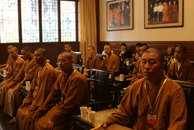 宏传法师与达诚法师交流教学经验