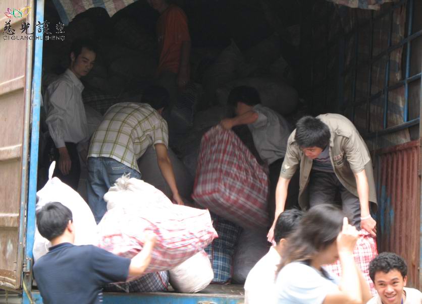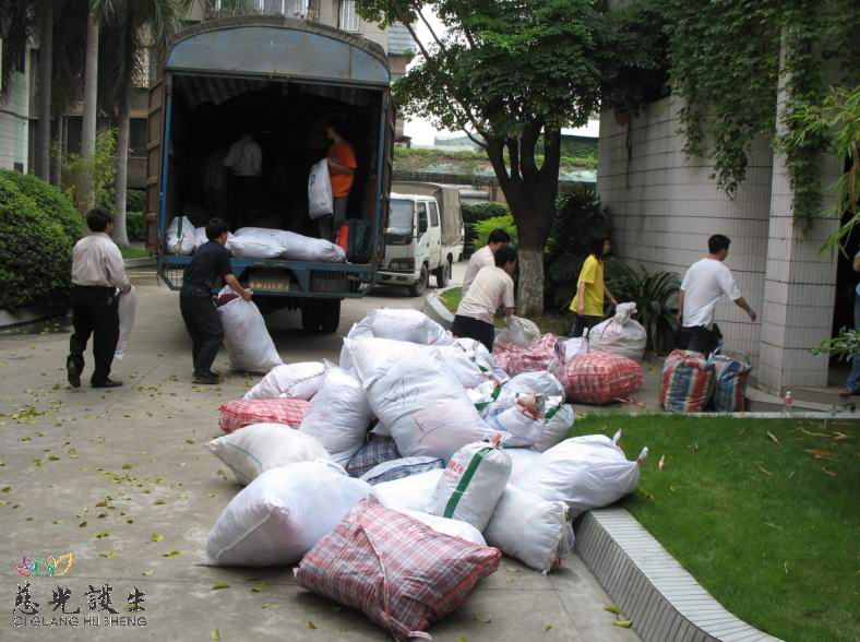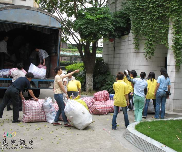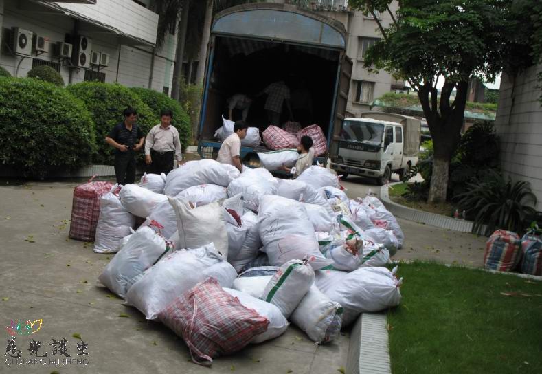 慈光护生和佛山义工一起,将从社会上筹集来得近4吨旧衣服,通过货运公司运送给四川色达普吾寺丘涅让萨仁波切处,用于寺院附近的学校和村民.