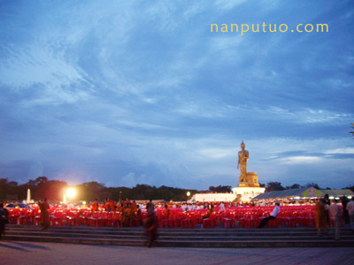10日晚上在佛统俯举行燃灯仪式,场面壮观宏大。