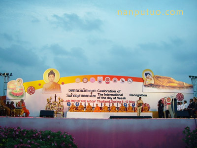 为庆祝释迦牟尼诞生、成道、涅槃纪念日,庆祝泰国王登基60周年,由泰国政府、泰国朱拉隆功佛教大学主办的第三届联合国国际卫塞节世界佛教大会