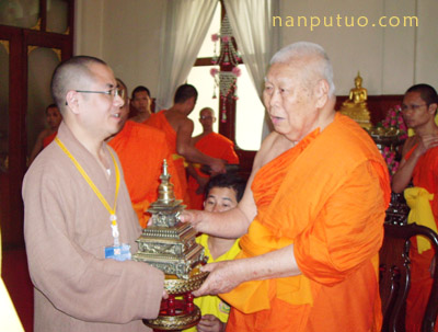 会议期间,闽南佛学院代表团受到了高度重视。泰国代理僧王颂德·菩达查亚、朱拉隆功佛教大学校长、副校长分别会见了闽院代表团,互相赠送了礼品,并就朱拉隆功大学与闽南佛学院将来互派留学生、师资、在朱拉隆功大学开设汉传佛教汉语教育等各种问题进行了探讨与交换了意见。